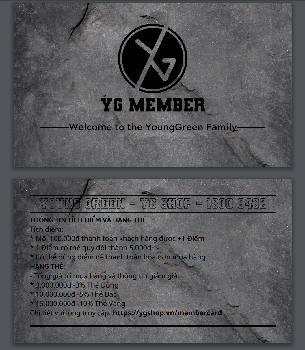 *THÔNG TIN CHI TIẾT VUI LÒNG TRUY CẬP: WWW.YGSHOP.VN/MEMBERCARD