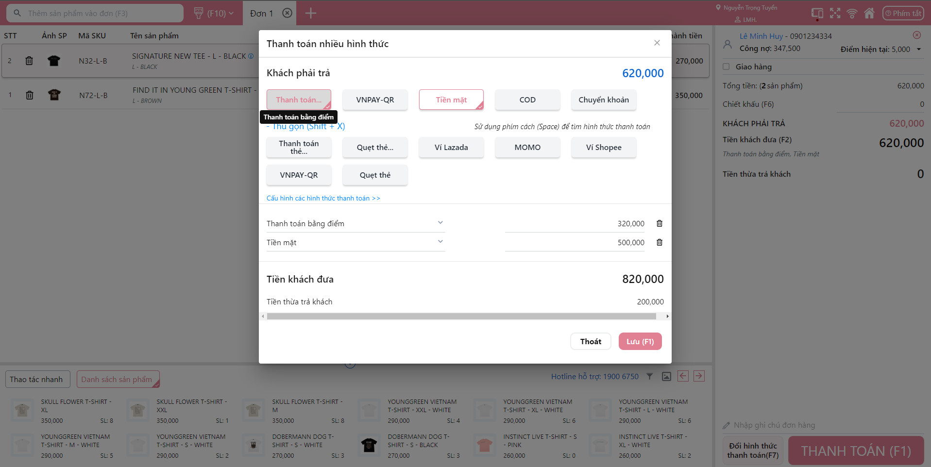 - Thanh toán bằng điểm: Khách có thể sử dụng số điểm tích lũy được để thanh toán khi mua hàng.