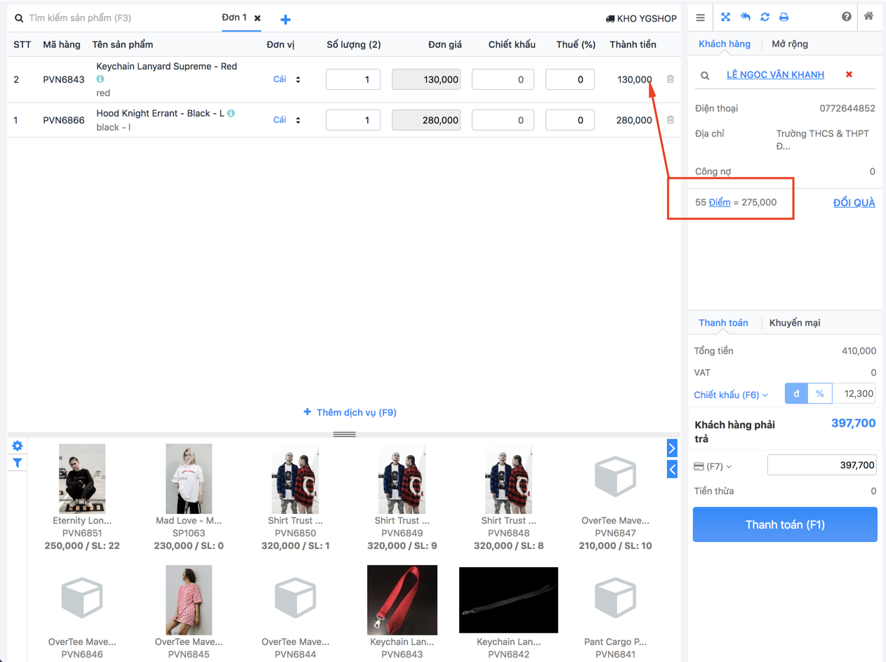 - Thanh toán bằng điểm: Khách có thể sử dụng số điểm tích lũy được để thanh toán khi mua hàng.